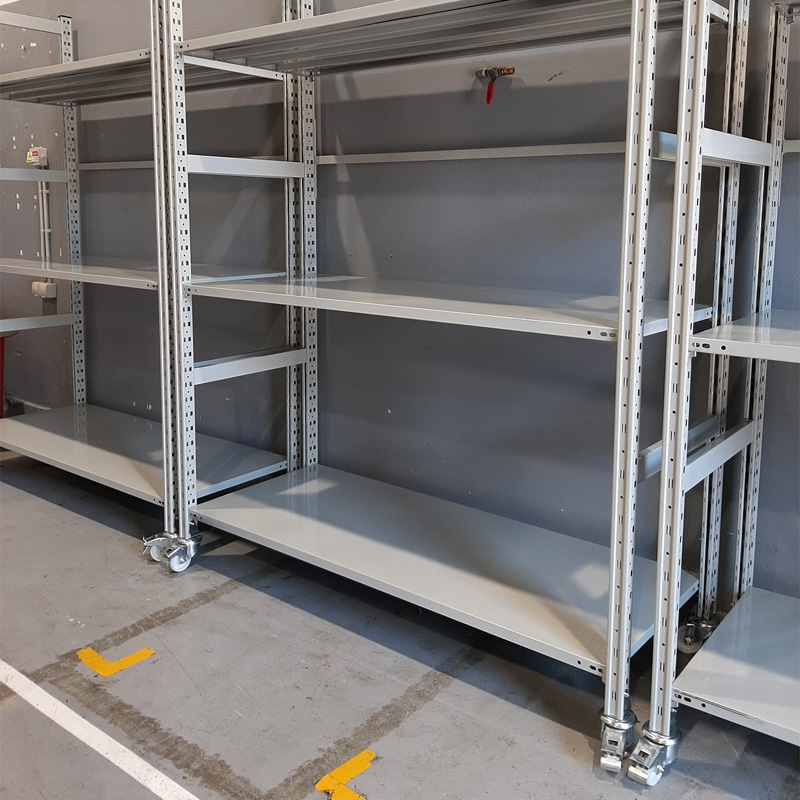 Radi se o pokretnoj verziji metalnog arhivsko skladišnog regala LB6. Ove metalne stalaže ili police sjajne su za skladištenje različitih artikala, a velika je prednost što se cijela stalaža može pomicati u prostoru. Dva kotača su okretna i dva kotača sa kočnicom.